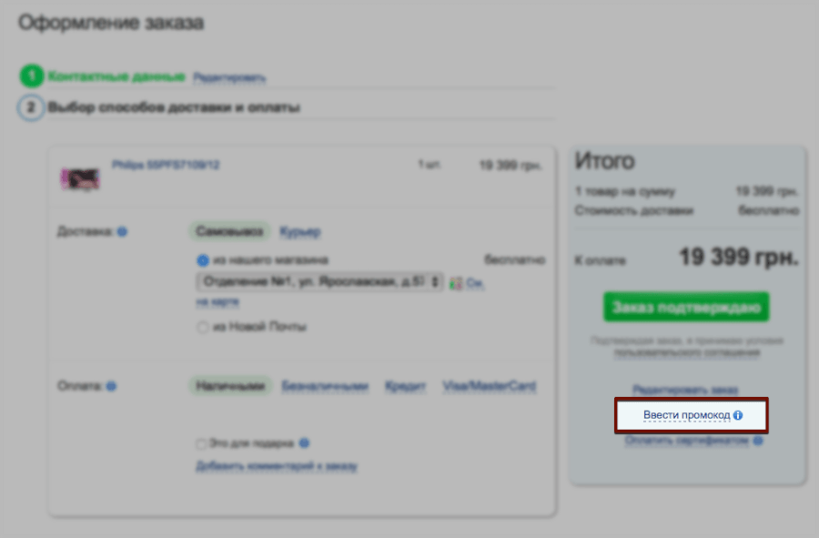 Промокод - це набір символів, кодове слово або інша інформація, яку потрібно надати при покупці. Її вводять в спеціально поле при замовленні, що допомагає знизити ціну. Скопіюйте промокод з нашого сайту і вставте його в кошику при оформленні замовлення. Поле для промокодом з'явиться після того, як ви натиснете на сходинку «Ввести промокод».