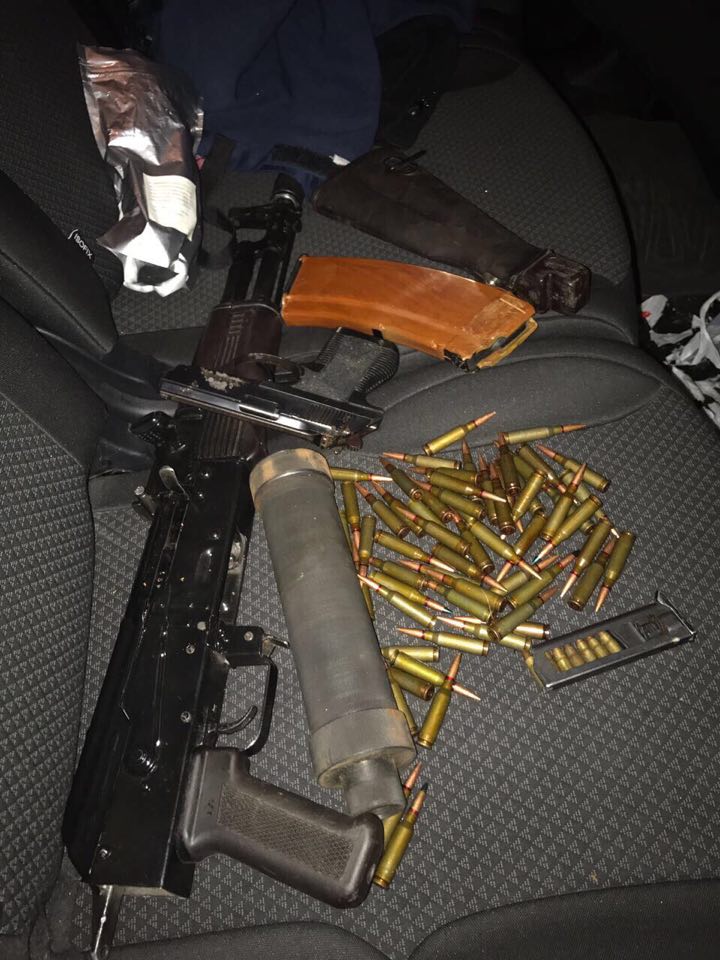 Відзначається, що в порядку ст. 208 КПК України затримано трьох зловмисників (двоє чоловіків і жінка). Їм готується повідомлення про підозру за ч. 1 ст. 263 КК України (носіння, зберігання, придбання, виготовлення, ремонт, передача чи збут вогнепальної зброї, бойових припасів, вибухових речовин або вибухових пристроїв без передбаченого законом дозволу), а також клопотання про обрання запобіжного заходу.