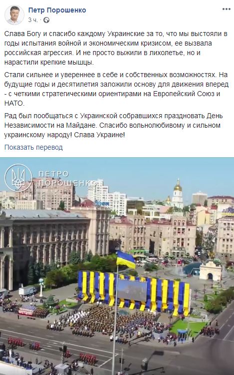 - Порошенко заявив, що Україна «наростила міцні м'язи в лихоліття»