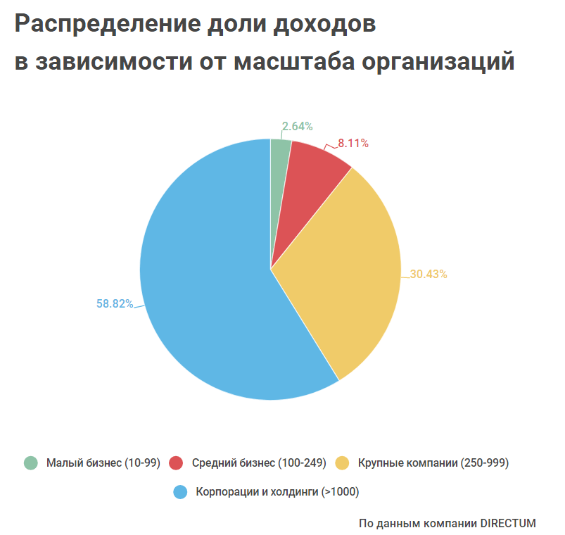 Проте подальшого зростання ринку СЕД сприятиме зовсім не розширення частки замовників сектора СМБ. Активний розвиток саме російських програм і систем електронного документообігу пов'язано з програмою імпортозаміщення та реальною потребою великих компаній в функціональних і масштабованих рішеннях.