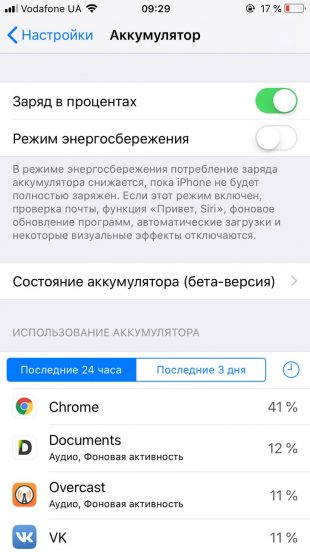 В iOS 11.3 Apple додала вбудовану функцію, яка показує здоров'я батареї. Необхідну інформацію ви знайдете в розділі «Налаштування» → «Акумулятор» → «Стан акумулятора». Тут можна побачити показник «Максимальна місткість», який відображає максимальне значення ємності акумулятора щодо нового в процентах.
