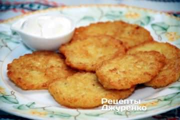 За допомогою вилки перевернути деруни і смажити з іншого боку до готовності.