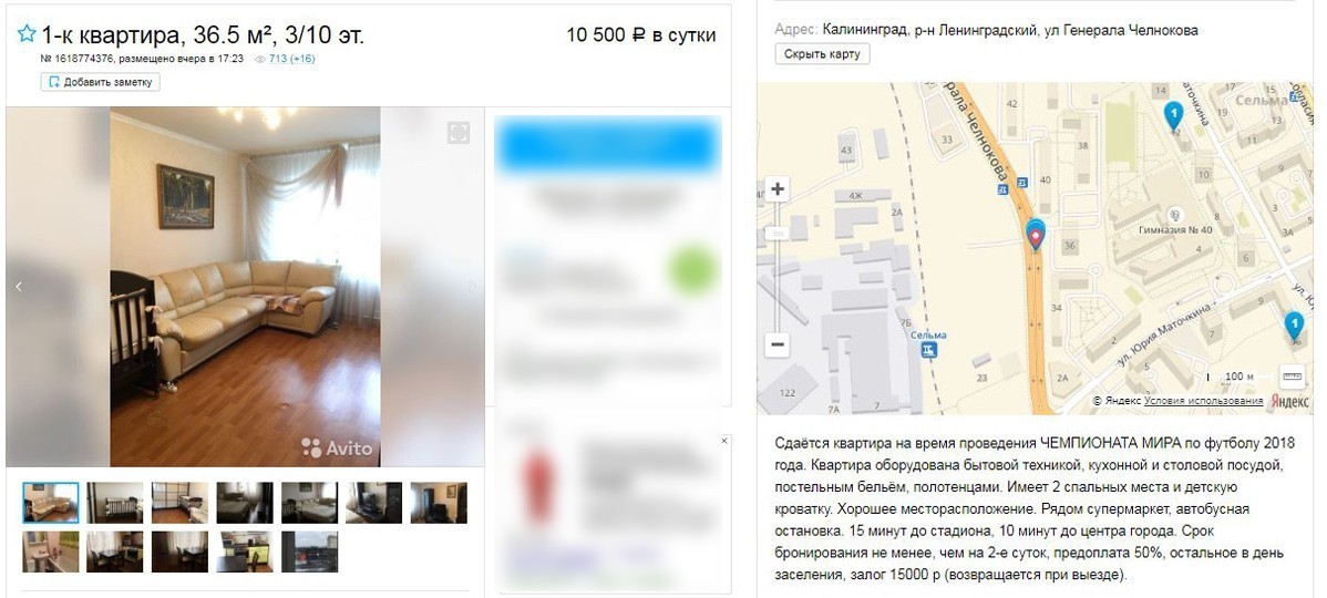 Власники здають квартири від 5 тисяч за добу до 238. Остання дорога житлоплощу розташована в 400 метрах від стадіону і розрахована 13 гостей. Принаймні, так стверджують власники, які прагнуть «ущільнити» мешканців немов оселедець в банку. Переважають же в оголошеннях квартири обшарпані і, м'яко кажучи, бувалі - здати намагаються все підряд.