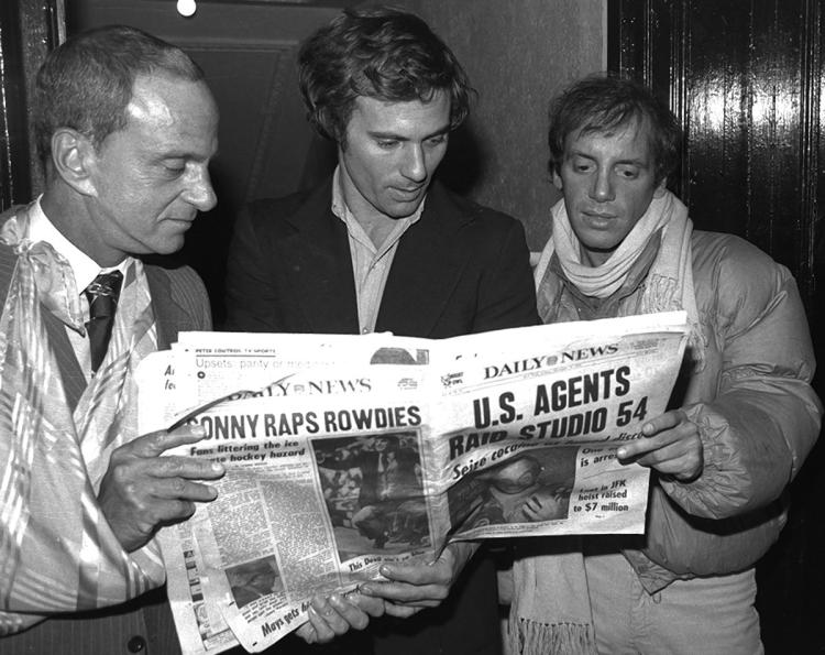 Шрагер зліва, рубелла справа, фото з відкриття «Студії 54», 26 квітня 1977 року