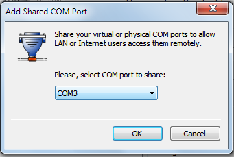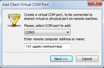 Перейдемо у вкладку локальні порти і натиснемо кнопку Add. Перед нами відкриється вікно, що пропонує створити пару COM-портів, які передбачаються бути з'єднаними віртуальним нуль-модемним кабелем: