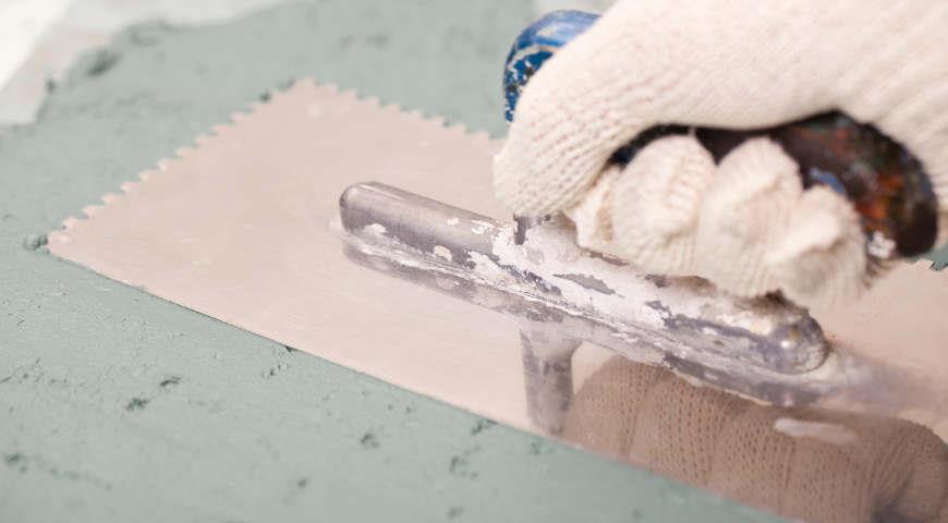 при вирівнюванні підлоги використовується стандартна суміш, але краще зробити підлогу наливним, коли води в розчині так багато, що вона вільно розтікається по поверхні і приймає форму горизонту. Продавці запевняють, що розлив рідкого розчину гарантує рівність підлоги, але будівельники радять все одно ставити «маяки». Зазвичай для наливних підлог використовується суміш на основі цементу, але, наприклад, фірма «Глімс» за основу бере екологічний гіпс, тому не дивуйтеся, коли побачите стяжку незвичного бежевого кольору - для «Глімс» це нормально. Визначаючись, яка саме суміш вам потрібна, враховуйте нерівність статей. Якщо перепад доходить до 15 см, потрібен звичайний піскоцементу, а якщо до 5 см, підійде наливна підлога. Коли стяжка готова, приступають до монтажу плитки або керамограніта. Найкраще при цьому використовувати плитковий клей на цементній основі.