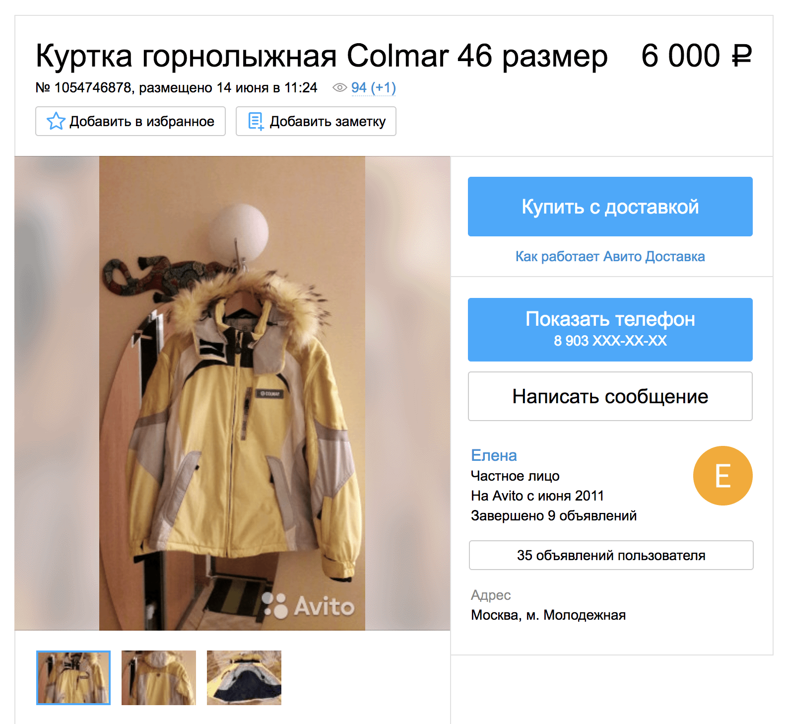 На «Авіто» куртку Colmar можна купити за 6000 Р