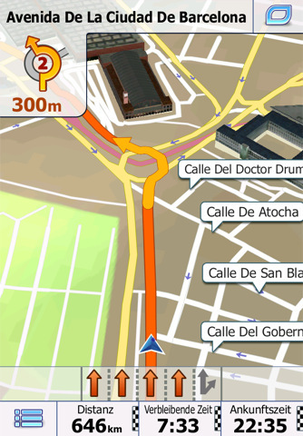 Європа - додаток iGO primo iPhone / iPad app На додаток до інструкцій з акустичного водіння з назвами вулиць, програма "Europa - iGO Primo", яка раніше продавалася під назвою "iGo My Way", спирається на маршрутне керівництво через карту. Асистент Lane допомагає у складних перехрестях. Презентація видатних будівель в 3D також забезпечує орієнтацію. У разі несправності GPS в тунелях інтерполяція маршруту використовується для узгодженого маршруту. Серед інших функцій - попередження про швидкість, автоматичний режим ніч / день і моделювання маршруту.