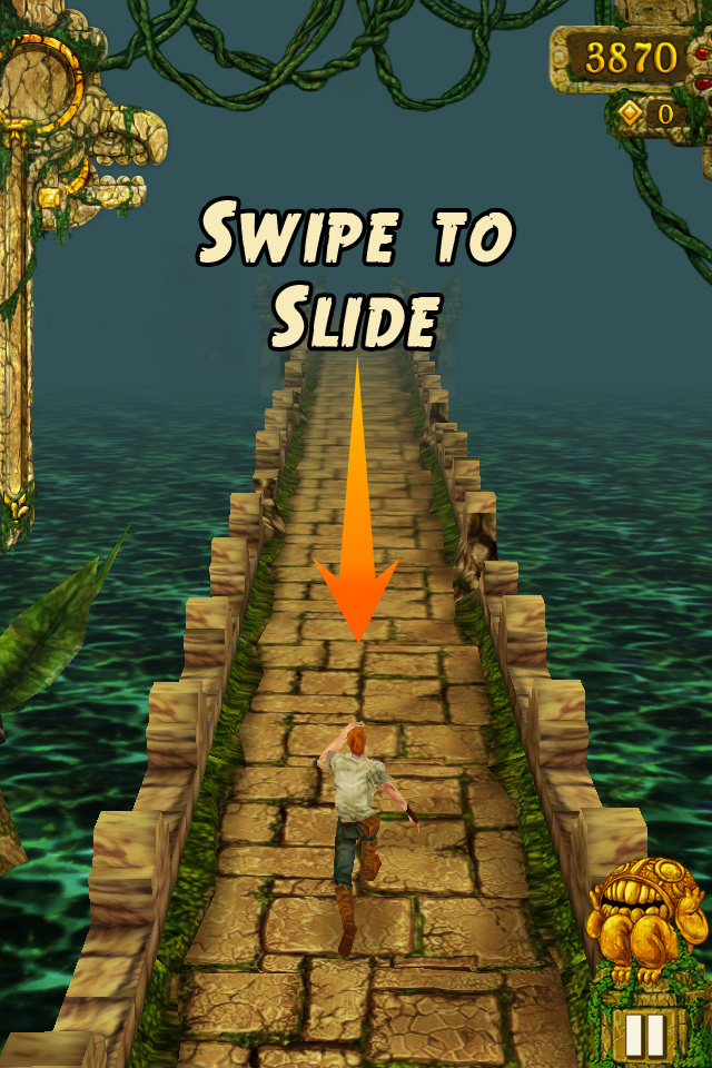 Temple Run iPhone / iPad App Запустіть по старих стінах храму і майстерно ухиляйтеся від перешкод. Будь то стрибки, ковзання або поворот - з простим сенсорним управлінням вашого iPhone не є проблемою. Але будьте обережні: чим далі ви входите в старі руїни, тим більше перешкод вам доведеться подолати.
