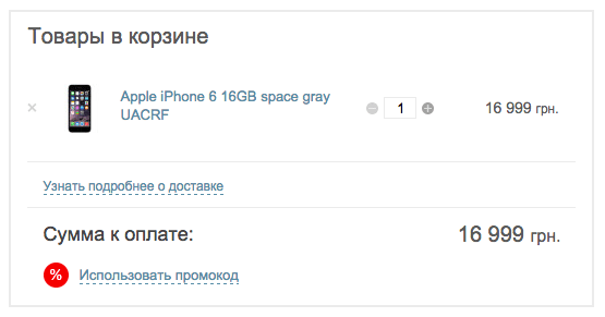 Готово! Ваша підсумкова сума до оплати змінилася. Вам вдалося заощадити, і тепер залишається тільки заплатити і чекати замовлення! Бажаємо вам приємних покупок. Економте з Пікоді ком.