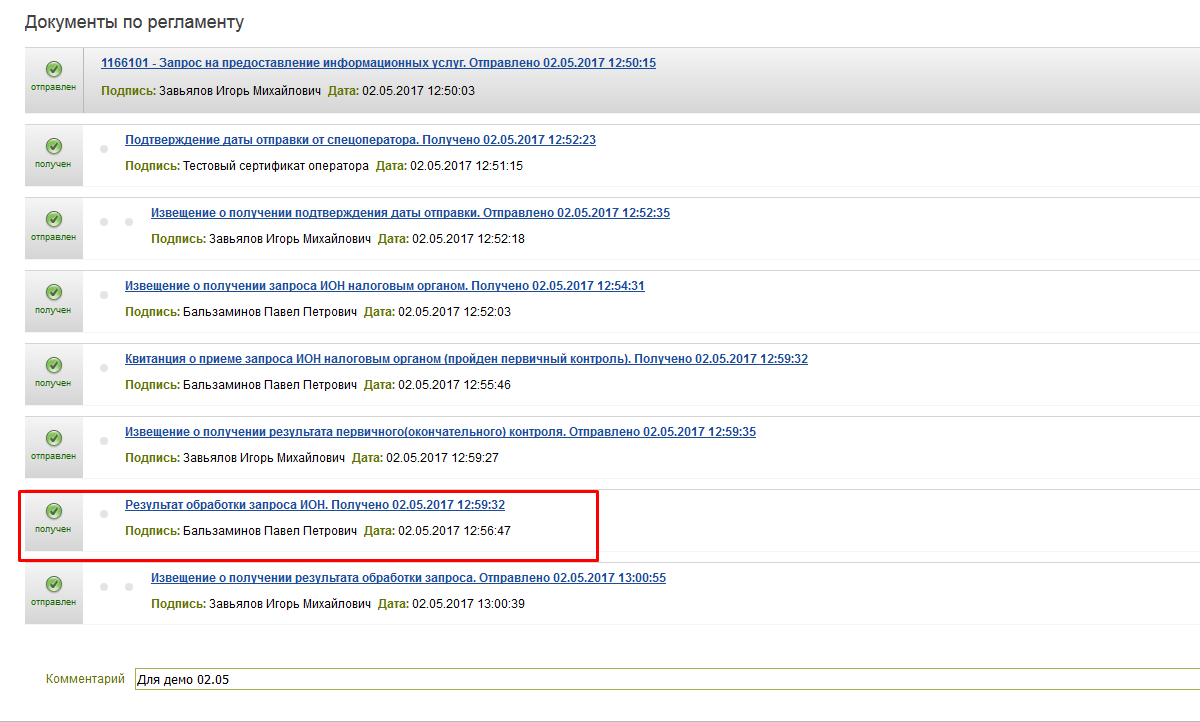 - У списку виберіть «Результат обробки запиту ІОН».