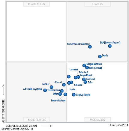 Що стосується загального положення в світі, то краще орієнтуватися на відповідний квадрант Gartner. Тут все теж не так просто. Зазначений квадрант відноситься вже до Talent Management Systems (TMS), спадкоємиці більш простого і більш чітко визначеного квадранта LMS попередніх років.