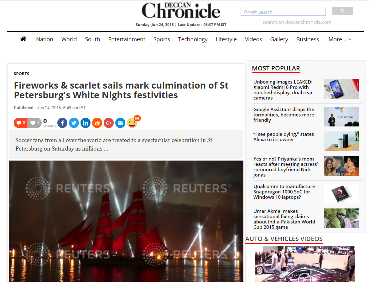 У свою чергу портал newstube також підкреслив, що в цьому році «Червоні вітрила» вийшли особливо масштабними в тому числі через проведення кубка світу з футболу в Росії.