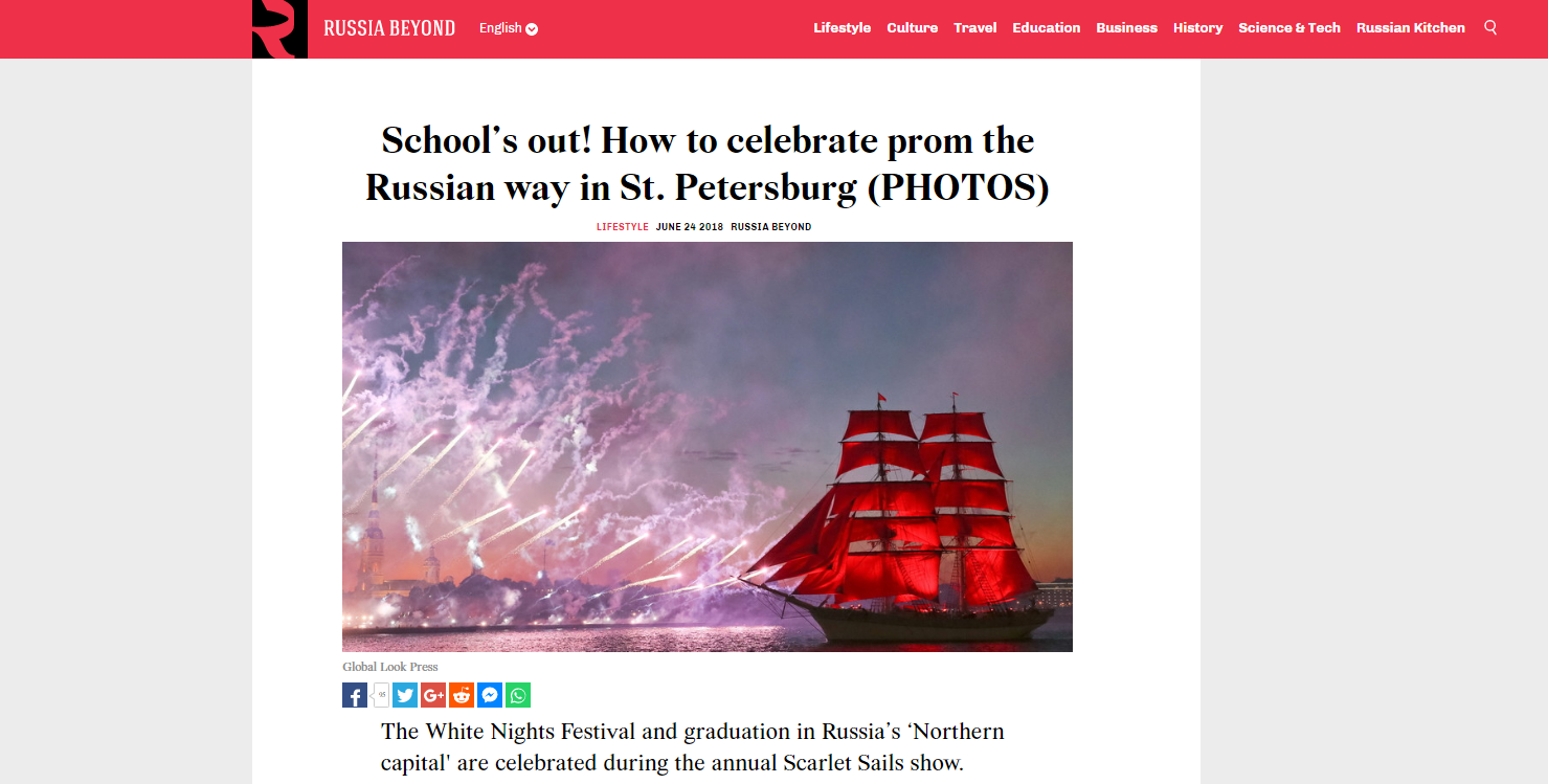 також портал rbth.com зазначив, що «Червоні вітрила» є, мабуть, не тільки наймасовішим, а й найзнаменитішим суспільною подією в Петербурзі.