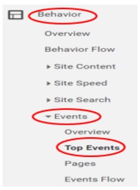 Дані виклику можна знайти у звіті " Найпопулярніші події " (у розділі Поведінка> Події) у перегляді GA: