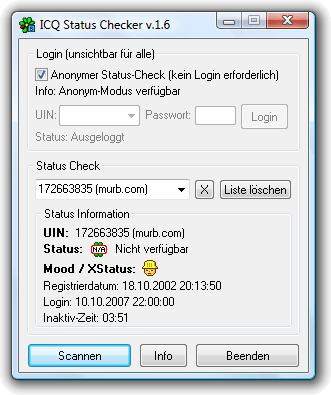 Висновок: Програмне забезпечення для аматорських шпигунів - з "ICQ Status Checker" може визначити, чи є хтось насправді в автономному режимі, або зробив в ICQ тільки "невидимий".