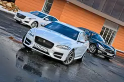 Якщо ні з чим не порівнювати, Jaguar їде дуже добре. Чітко слід за кермом, не крениться в поворотах і, незважаючи на низькопрофільні шини, краще за всіх в тесті ховає від вас стики і дрібні ямки. Але варто опинитися в Volvo або Audi, тут же розумієш: XF поганенько тримає пряму, нервово поводиться в коліях і норовить поплисти в бік при інтенсивному розгоні. Але ж у нас повнопривідна версія з системою Intelligent Driveline Dynamics, безперервно відстежує дорожню обстановку і розподіляє крутний момент між осями за допомогою багатодискової муфти.