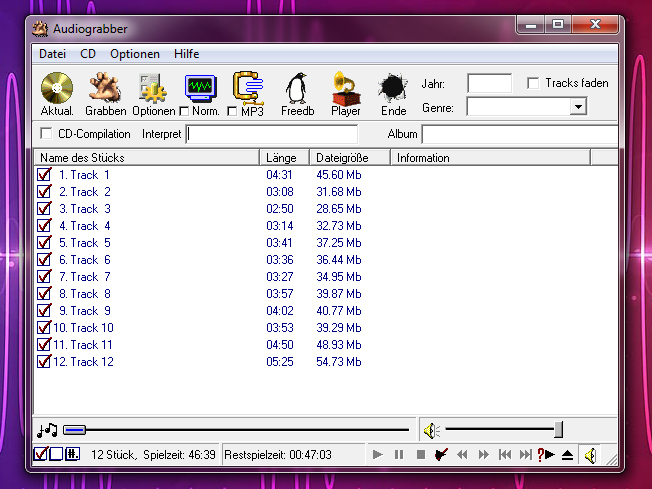 Програмне забезпечення зручно витягує пісні на музичному компакт-диску у форматі MP3, OGG або WAV і вражає дуже гарною швидкістю.