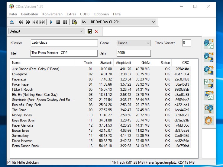 CDex З CDex ви можете створювати власні файли MP3, як вам подобається з аудіо компакт-дисків. Безкоштовна програма працює надійно, порівняно швидко і пропонує високу простоту використання.