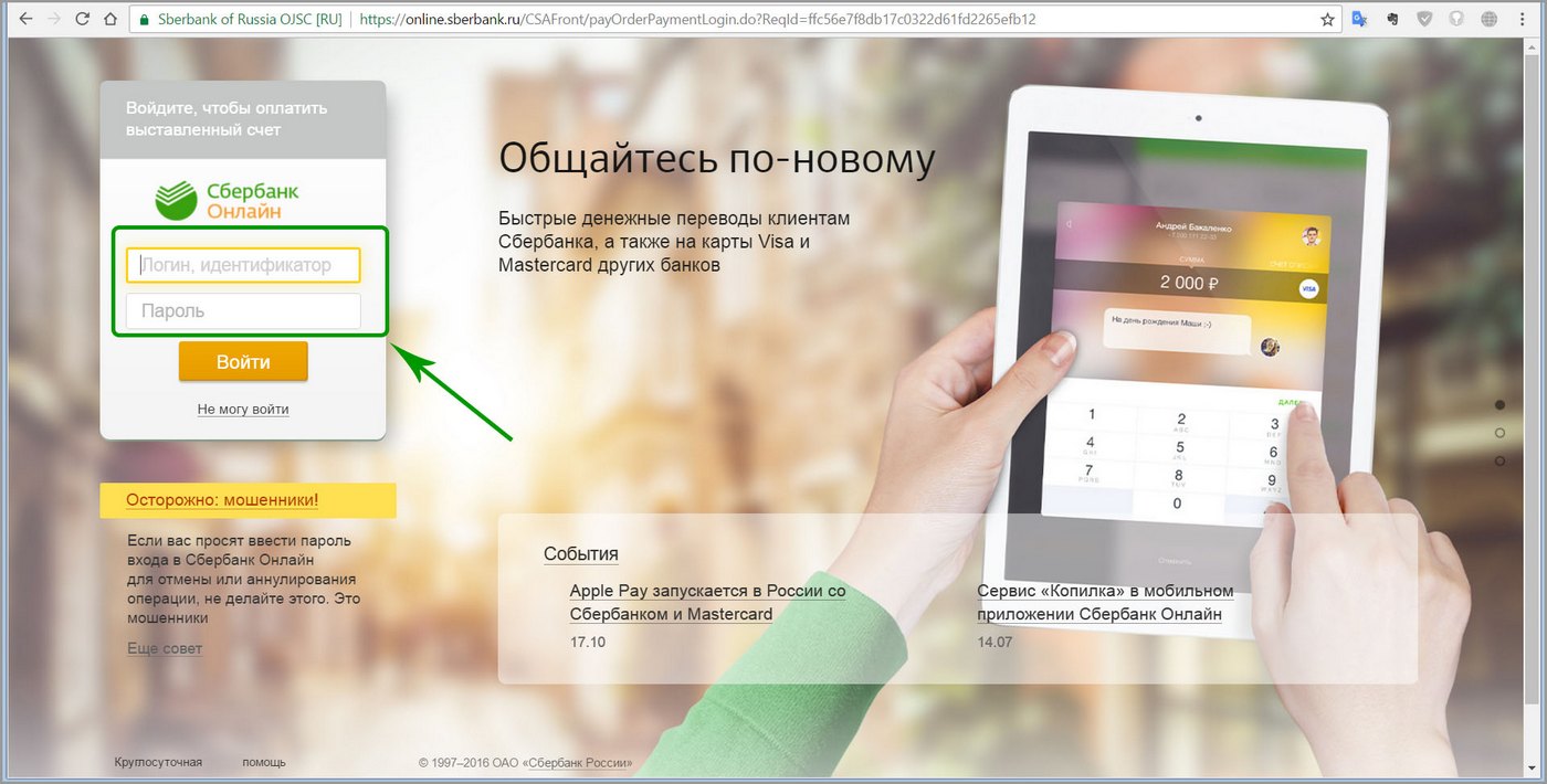Після цього вас перенаправить на сайт Ощадбанку. Введіть там свій логін і пароль від «Сбербанк Онлайн». Не турбуйтеся за їх збереження - адже ви вже знаходитеся на сайті Ощадбанку. Ми не зберігаємо на Туту.ру ніяких особистих даних від сервісу «Сбербанк Онлайн».