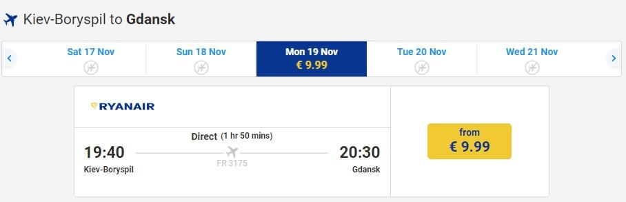 Найдешевші квитки на літаки Ryanair з України можна придбати без знижки за ціною в 9,99 євро.