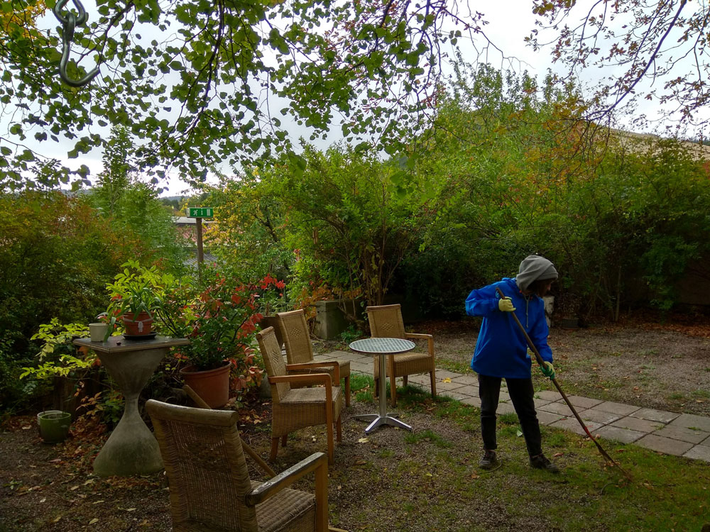 В Австрії ми допомагали доглядати за застарілим будівлею старого театру. Ми готувалися до чергової виставці картин місцевих художниць, прибирали прилеглу до будівлі театру парк і полювали за мишами в коморі. Іноді робота була курній.