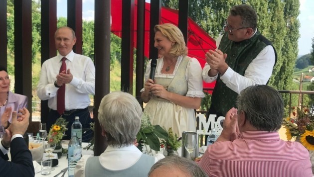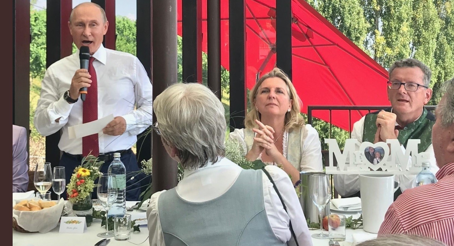 - Він також виступив з тостом, де висловив вдячність і своє задоволення в зв'язку з тим, що йому знову випала нагода відвідати гостинну Австрію і настільки мальовниче місце ... Багато жартував, що було гідно відзначено гостями, які неодноразово переривали його оплесками, - повідомив представник Кремля.