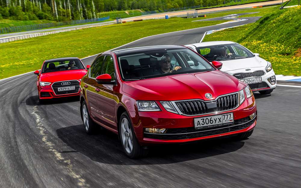 Оцінюємо здатності модернізованої Октавії, а також седана Audi A3 і хетчбека Kia cee'd GT на звичайній і на гоночній трасах.