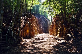 Смертельна залізниця : Австралійський уряд очистив 7 кілометрів від старого русла доріг від переходу Hellfire до компресорного різання. Мало туристів витрачати час, щоб пройти його, але спробувати і зробити це, як це і рухається досвід і приємна прогулянка по мирному тінистих джунглів. Це вид на долину Квай ...
