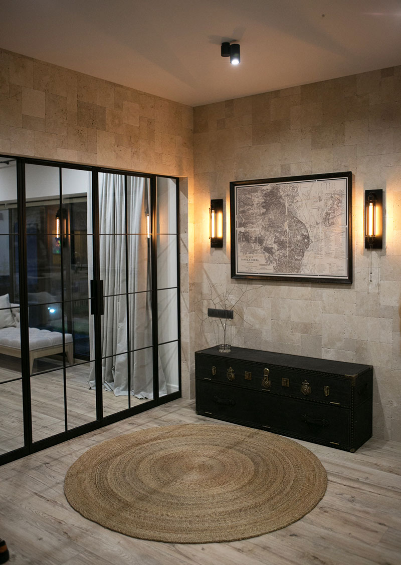 Чесно кажучи, з будинком нам дуже пощастило. По-перше, архітектура: це сучасне одноповерхова будівля П-подібної форми з внутрішнім двориком по центру - подібні будинки у нас велика рідкість. По-друге, замовник: на першій же зустрічі ми зрозуміли, що знаходимося на одній хвилі. Незвичайна архітектура, а також любов господаря до американської меблів Restoration Hardware наштовхнули нас на цілком конкретні ідеї з приводу концепції майбутнього житла - було вирішено створити якусь сучасну інтерпретацію американського ранчо. Будинок дістався нам на етапі «коробки», а всі внутрішні роботи зайняли 1.5 року. Сьогодні ми запрошуємо вас зробити загальний тур по кімнатах цього будинку, а в наступних публікаціях ми плануємо розкрити деякі цікаві моменти реалізації окремих приміщень. Дуже чекаємо ваших найчесніших коментарів :) Напишіть нам, про що б ви ще хотіли дізнатися щодо цього проекту. Приємного перегляду!
