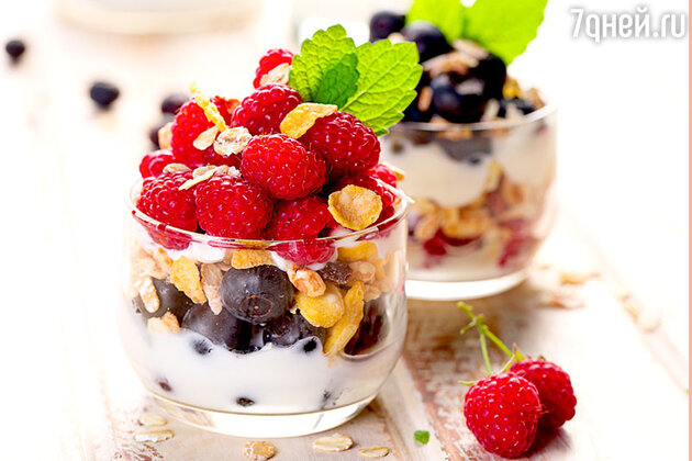 Парфе на сніданок підійде для тих, хто зазвичай прокидається не в дусі і довго «розгойдується» перед початком дня. По-перше, традиційні мюслі з йогуртом, викладені в високий прозорий стакан і прикрашені сезонними фруктами або ягодами, радують око і відмінно поєднуються з ранковою кавою. По-друге, молочні продукти - джерела білка і вітаміну В, який забезпечує людину енергією і гарним самопочуттям, а також кальцію, що зміцнює кістки і зуби. До того ж, йогурт містить калій і магній, які покращують настрій. Ні ранкової дратівливості!