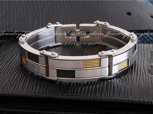 Часто в якості матеріалу для виготовлення чоловічих браслетів використовується ювелірна - вона ж хірургічна, медична сталь. Браслети такого типу не тільки естетично красиві, але і абсолютно безпечні для здоров'я людини, не викликають появи будь-яких алергічних реакцій. Вони добре зберігають зовнішні характеристики навіть при впливі сонячної радіації, високої температури, морської води. Крім цього, купивши браслет з хірургічної сталі, ви можете не побоюватися появи на ньому тріщин, сколів, скупчень шкідливих мікробів і т.д.