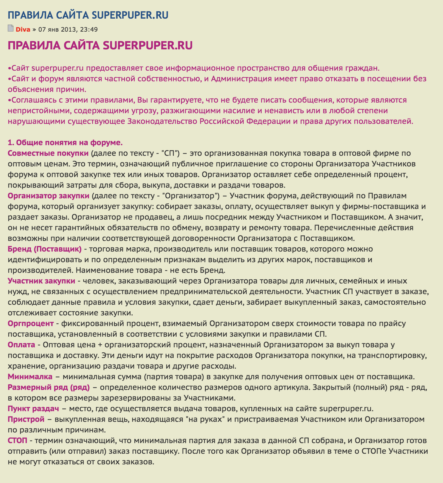 Перед замовленням я читаю права і обов'язки покупців і організаторів на сайті. Я звертаю увагу на те, які правила повинна дотримуватися, в яких випадках організатор знімає з себе відповідальність, як оплачувати замовлення і що робити, якщо надсилають не той товар.