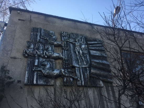 Прямо над входом в їдальню знаходиться загадковий барельєф брежнєвських часів, який зображає, очевидно, п'ять кінських сил.