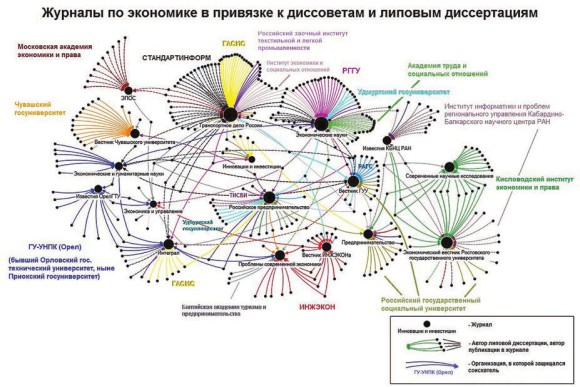 Мал. 2. У цьому немає нічого дивного, оскільки, наприклад, один з організаторів фабрики лжедіссертацій в РДГУ Федір Стерліков одночасно виступає заст. головного редактора журналу «Економічні науки», а зам. голови спеціалізованої вченої ради «Стандартинформ» проф. Михайло Ломакін - член редсовета «Транспортного справи Росії». У той же час В'ячеслав Бузирев - один із «лідерів» Діссернета по супроводу липових дисертацій - брав участь в фабриці колишнього Інжекона (нагадаємо, що цей вуз в 2012 році став частиною нового СПбГЕУ) і одночасно складається в редсовета «Проблем сучасної економіки».