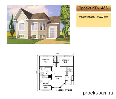 Мабуть, одним з найбільш поширених варіантів каркасного житла є будиночок 6х6 метрів, що володіє зручною і просторою терасою перед входом. Такі будинки нерідко будуються в два поверхи, верхній з яких - мансардний. На першому поверсі розташовується кухня і вітальня. На другому поверсі облаштовано приміщення для великої спальні, яке, при бажанні, можна розділити на два приміщення поменше (що особливо зручно для сімей з дітьми).