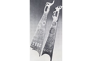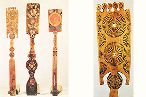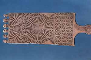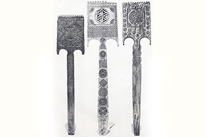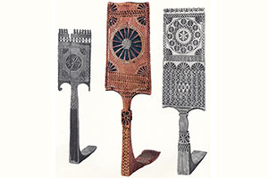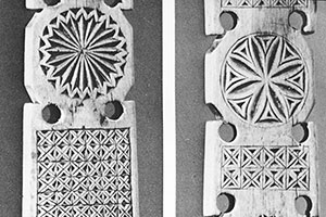 XIX ст. Різьба трехгранновиемчатая, контурна, 93 X 26 X 66, Сольвичегодська у., Вологодська губ. // Російські прядки: альбом / [Н. В. Тарановська, Н. В. Мальцев]. - Л., 1970. - С. 53.