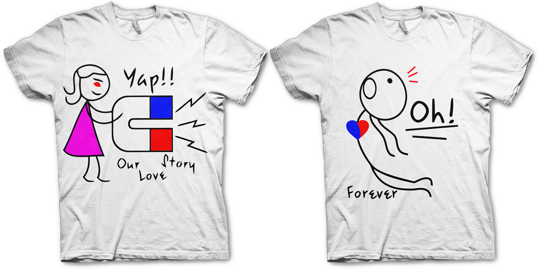 - недорогі футболки з романтичною написом і картинкою для пари;
