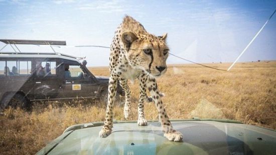 Гепард застрибнув в джип під час сафарі і потрапив на відео