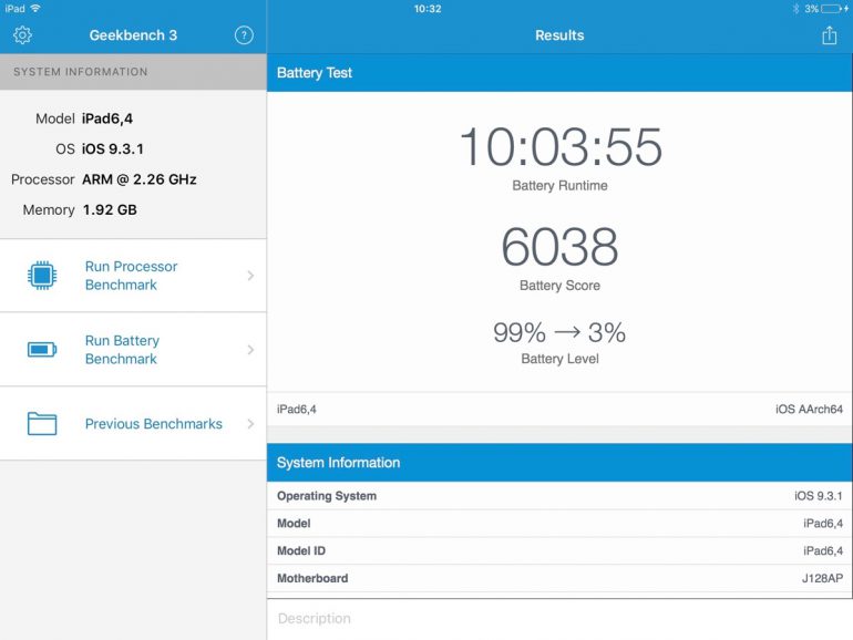 Вбудований в iPad Pro 9.7 акумулятор має ємність 7306 мАг, чого досить для близько 10 годин роботи в режимі середнього навантаження.
