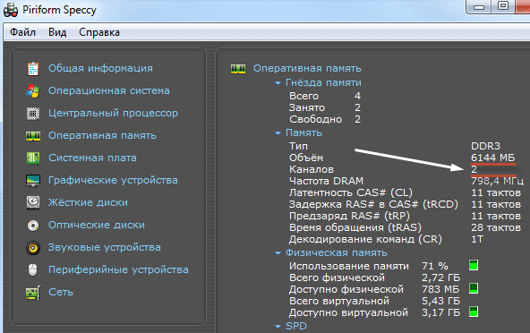 А далі просто читаєте, що Вас цікавить. Там все описано доступно і зрозуміло. Є характеристики про тип DDR, кількості каналів, обсязі та частоті. Також можна побачити, скільки відсотків оперативної пам'яті використовується в дану хвилину і ще багато корисних характеристик. На основі цих характеристик ви зможете вирішити, чи варто вам збільшувати оперативну пам'ять чи ні.