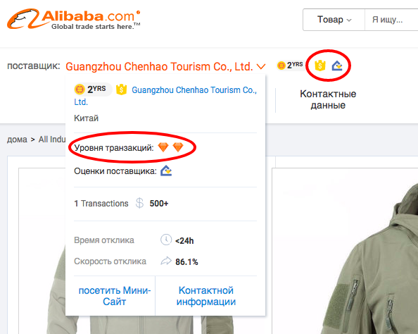 І стежте, щоб продавцеві було присвоєно статус Assessed Supplier (це значок будиночка в пункті «Оцінка постачальника»). Він означає, що представники Alibaba виїжджали на виробництво до таких постачальникам і особисто перевіряли всі документи. Зараз такий значок є майже у всіх, але все одно будьте уважні.