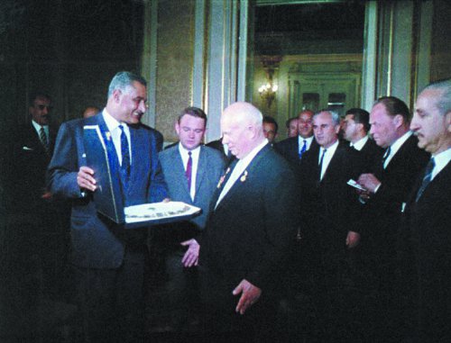 ретаря Президії Верховної Ради СРСР М. П. Георгадзе з пропозицією оформити укази Президії Верховної Ради СРСР про нагородження Насера і Амера орденами Леніна і медалями Героя Радянського Союзу і терміново доставити нагороди в Каїр. У наступний день ніякої реакції з Москви не було. Хрущов занервував, відчуваючи пасивний опір його пропозицією в Москві, і до вечора другого дня розпорядився написати ще одну телеграму, але в більш енергійному ключі. Тільки після цього в Каїр прибув Михайло Георгадзе з двома комплектами нагород, і увечері 12 травня Микита Хрущов в урочистій обстановці прикріпив ордена Леніна і Золоті зірки Героїв СРСР на груди Гамалю Абдель Насеру і Абдель Хакіму амер.