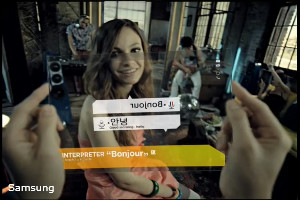 Samsung пропонує варіанти застосування планшета майбутнього. Скручувати прозорий планшет дозволяє приймати відеодзвінки, причому в режимі конференції планшет можна скласти, що б два абонента змогли побачити один одного. Планшет двосторонній, що пропонується використовувати в режимі перекладача.