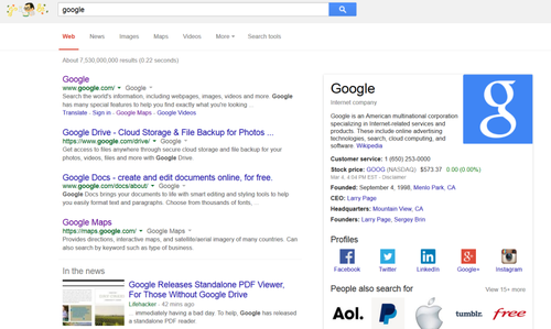 Коли його запитали, що більшість користувачів натискає після пошуку «Google» в Google, Illyes не був упевнений в тому, що перша посилання, що веде їх назад на головну сторінку Google, отримує найбільшу кількість кліків.