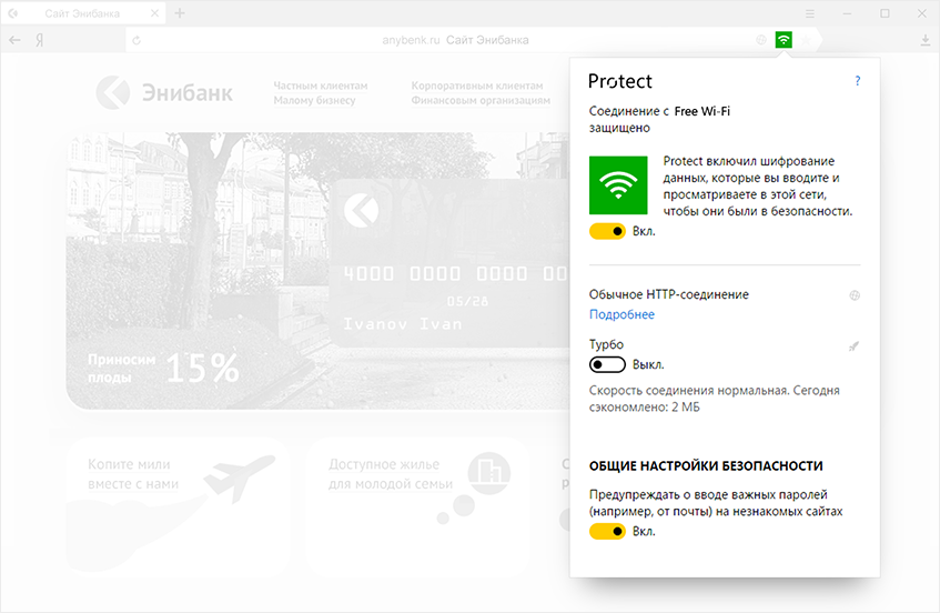 Якщо ви звертаєтесь до надійного сайтом, який використовує захищений протокол HTTPS , То ніякої небезпеки немає - вони шифруються, щоб виключити втручання з боку. А ось якщо сайт працює по протоколу HTTP без шифрування, в гру вступає Protect. Він направляє трафік через захищений сервер Яндекса - обмін інформацією між пристроєм користувача і сайтом відбувається через зашифрований канал.