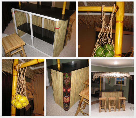 Труби ПВХ, розфарбовані під бамбук, різні атрибути на кшталт екзотичних масок і солом'яного даху - ця барна стійка стане відмінним нагадуванням про екзотичні жарких країнах і пляжному відпочинку. Читайте докладну інструкцію з виготовлення тут .