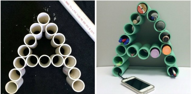 простий органайзер з склеєних і пофарбованих трубок ПВХ прикольно виглядає і допомагає позбутися від безладу на столі.