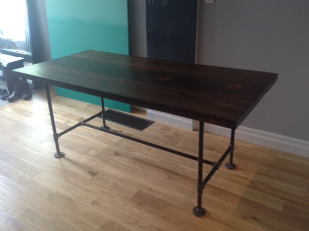 Цей стіл з трьох дощок і металевих труб можна використовувати в якості обіднього. Нота індустріального стилю в дизайні приміщення. тут можна подивитися технологію виготовлення.