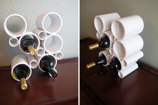 Якщо вам потрібна підставка максимум для чотирьох-п'яти пляшок, можна зробити такий ось ПВХ-креатив. І робити просто, і виглядає здорово.